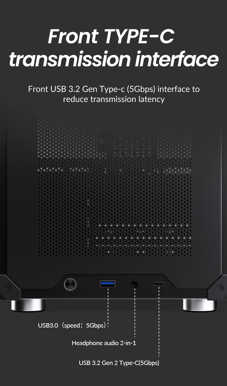 Front I/O Port:Type-C(20PIN)/USB3.0*1/AUDIO*1+MIC*1(Headset+mic combined) |