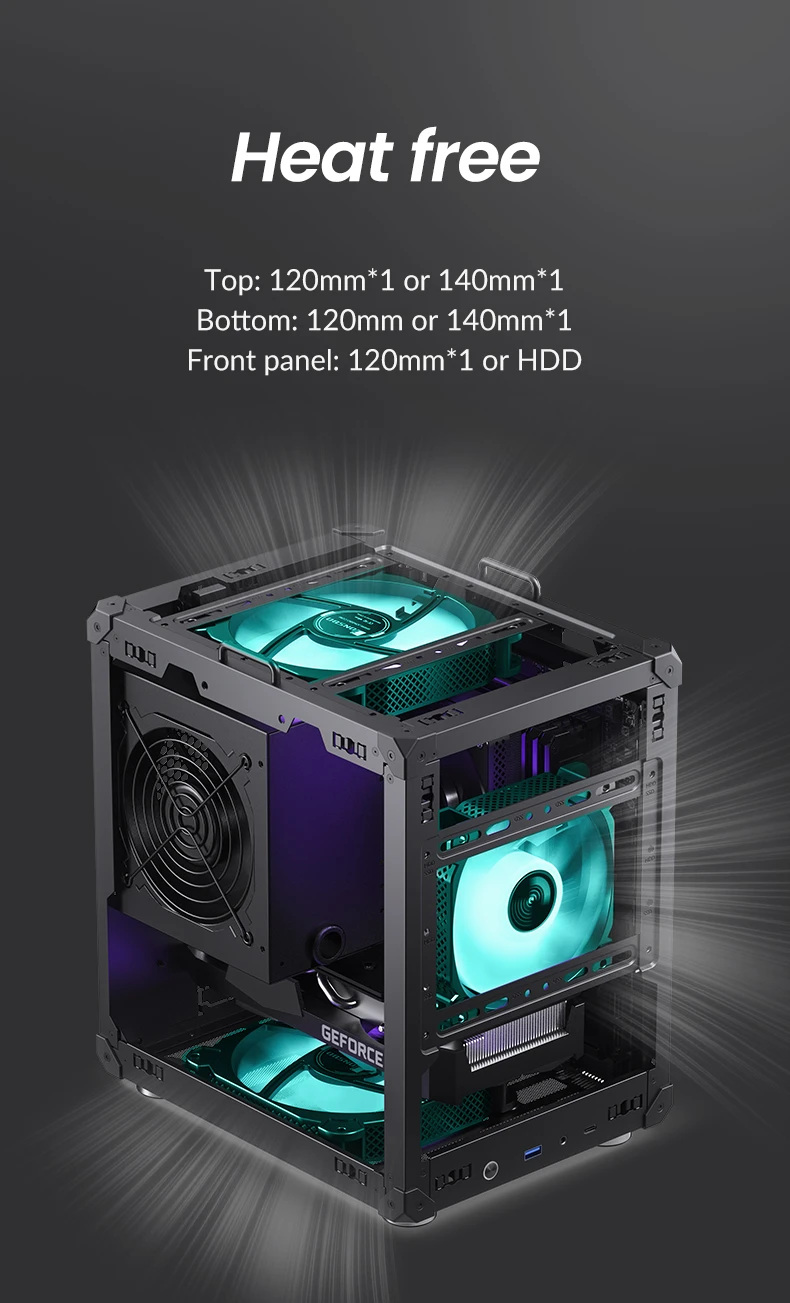 | Fan: Top 120mm*1 or 140mm*1 Bottom 120mm*1 or 140mm*1 Front 120mm*1 or HDD |