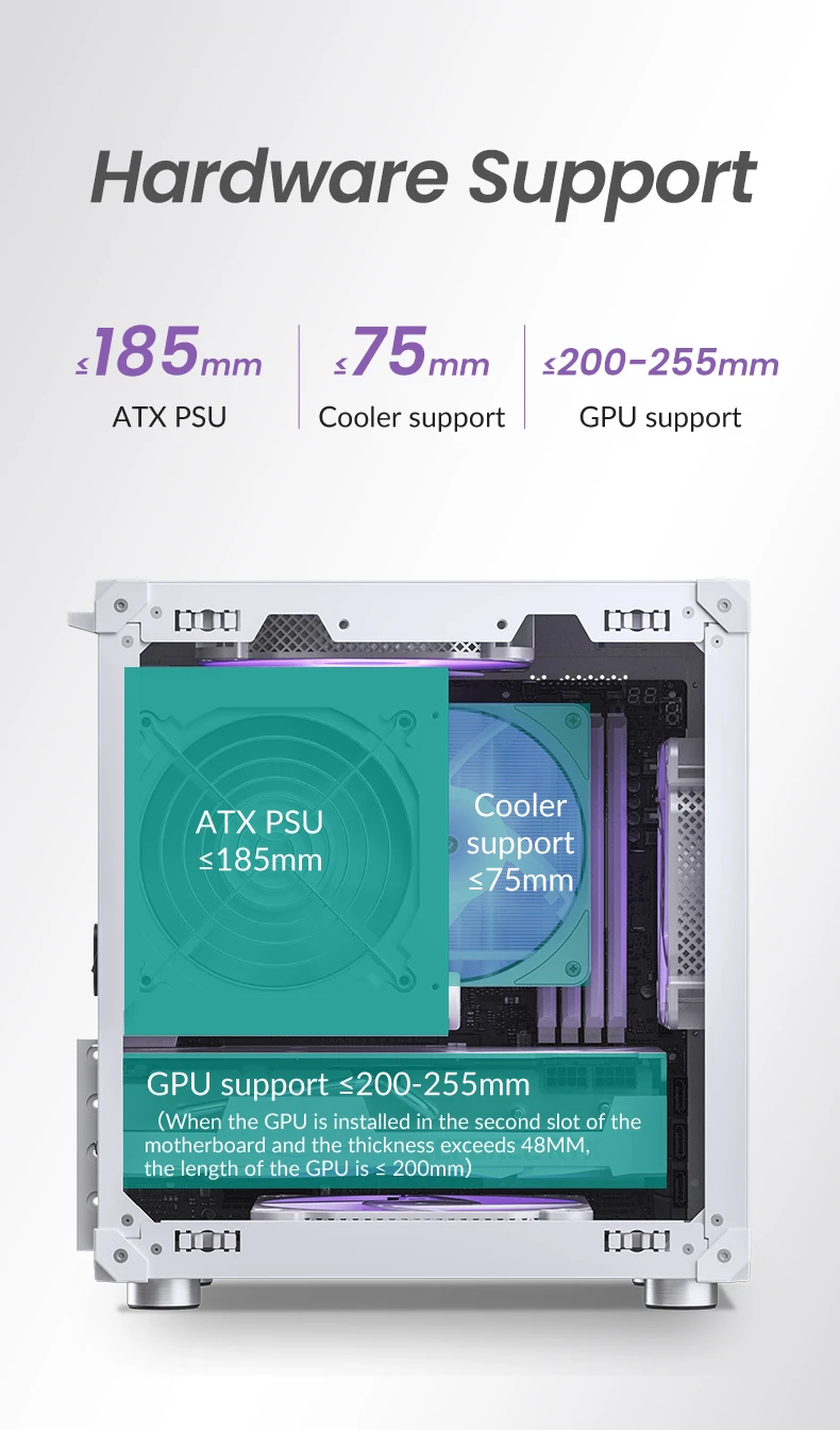 | Fan: Top 120mm*1 or 140mm*1 Bottom 120mm*1 or 140mm*1 Front 120mm*1 or HDD |