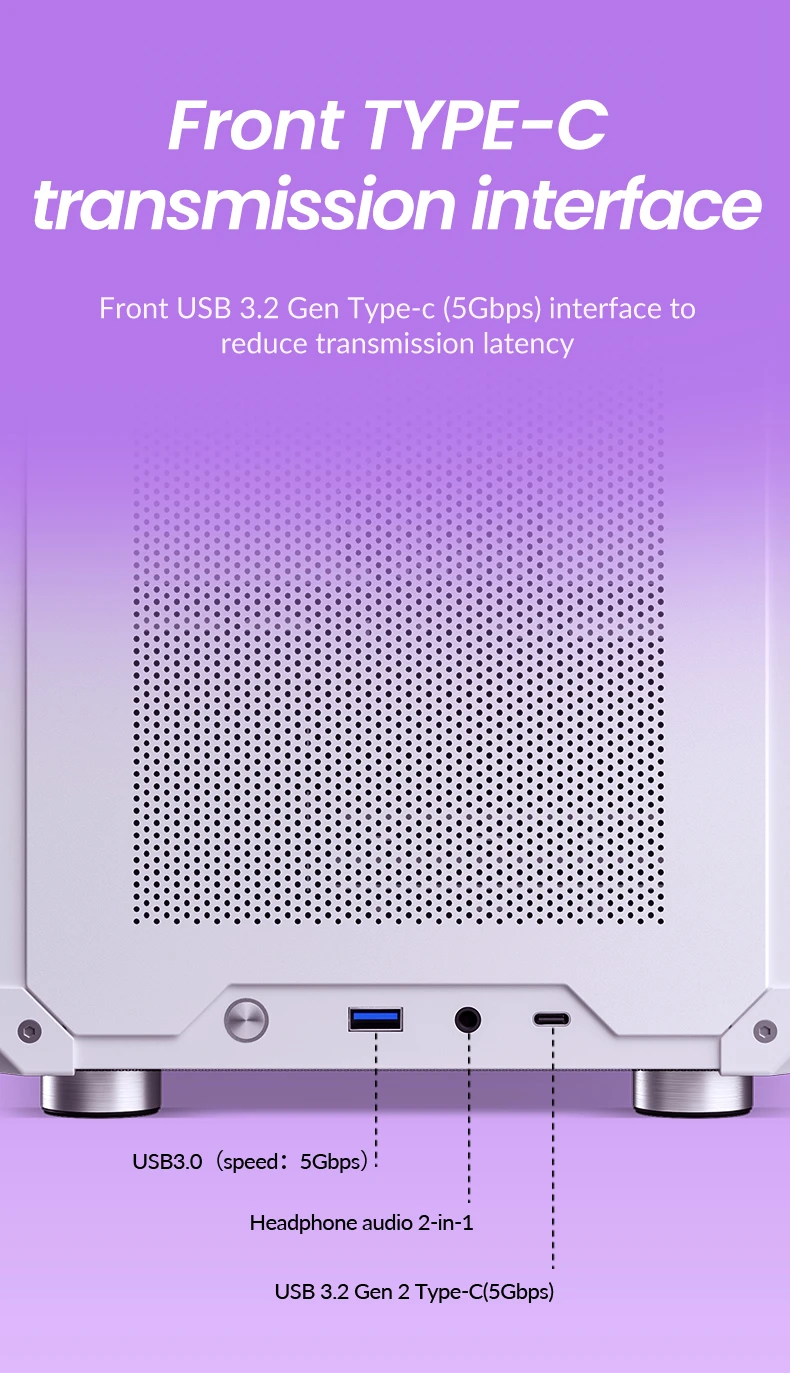 Front I/O Port:Type-C(20PIN)/USB3.0*1/AUDIO*1+MIC*1(Headset+mic combined) |