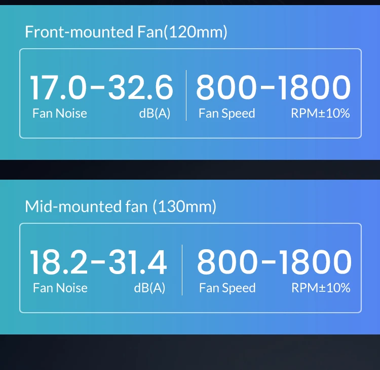Rated Voltage:FAN 12V DC(130mm Fan) FAN 12V LED 5V(120mm Fan) |
