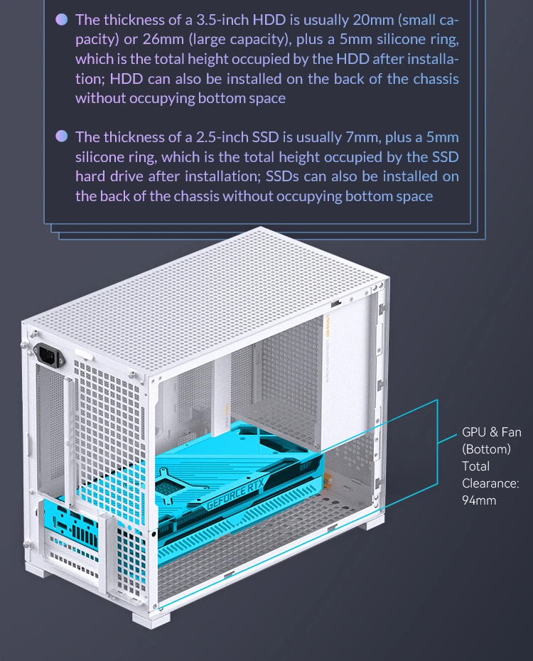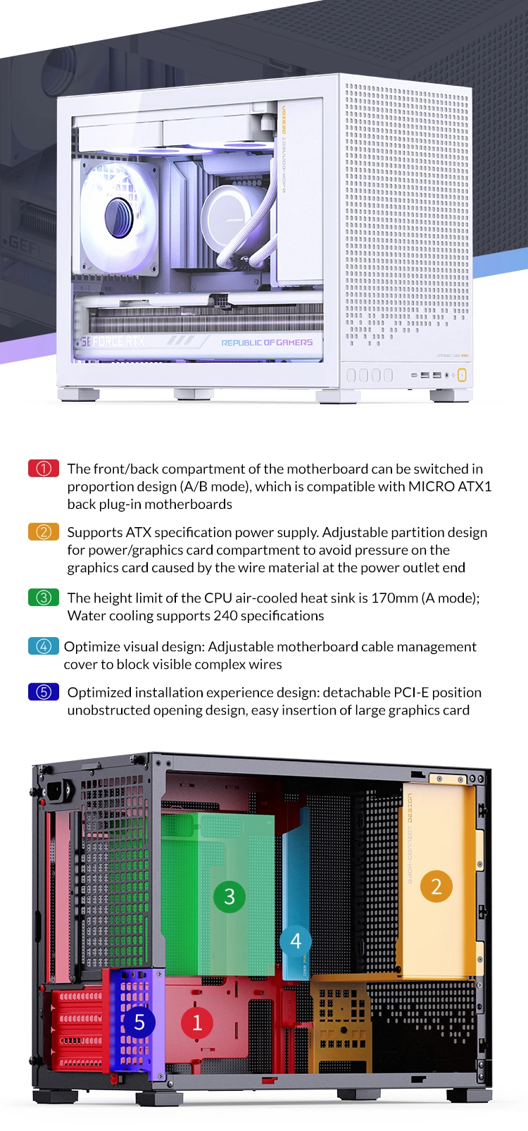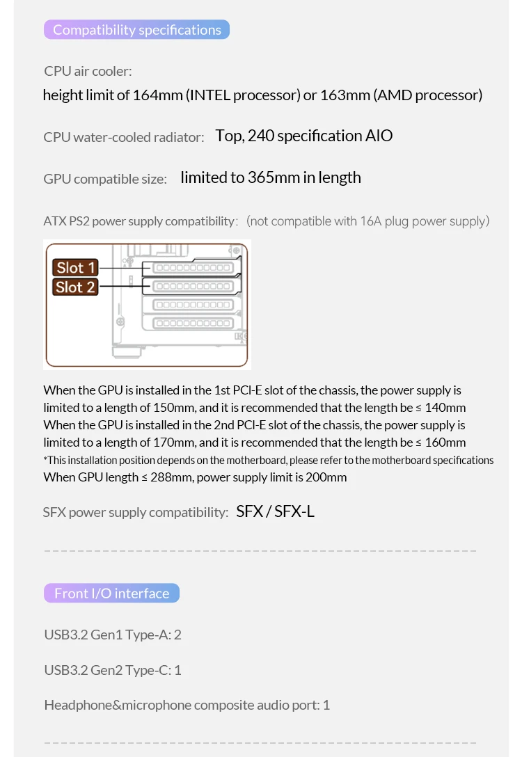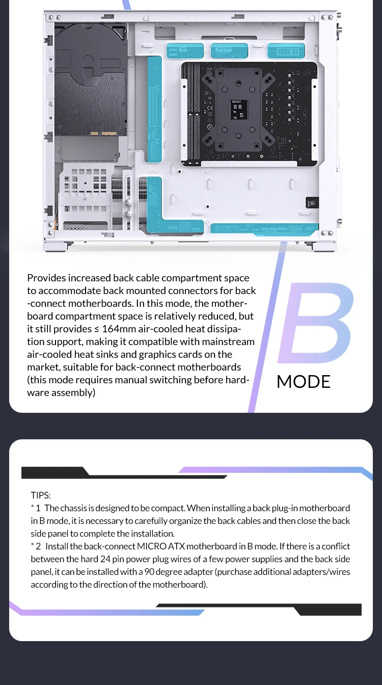 CPU Air Cooler Clearance:In A mode, the height limit is 170mm (Intel CPU) or 169mm (AMD CPU) |