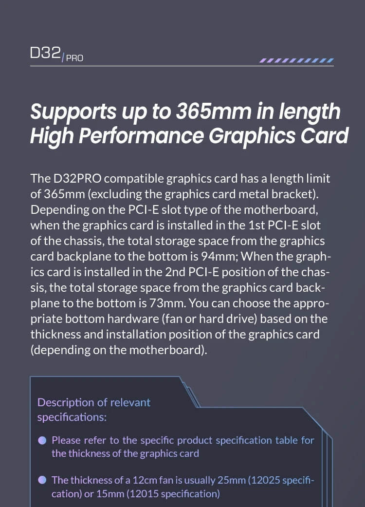 • When the GPU is installed in the first PCI-E slot of the chassis, the maximum