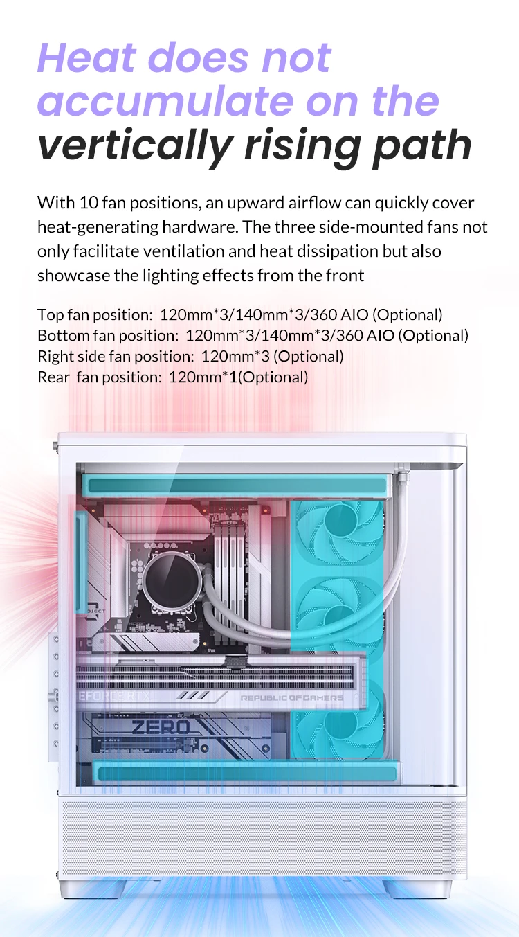 | Water Cooling: Top 360mm*1(optional); Bottom 360mm*1(optional) |