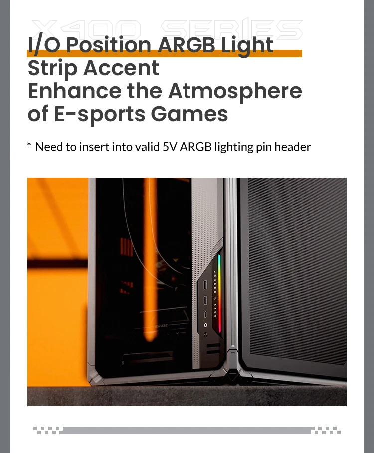 Front IO Port:USB3.2 Gen1 Type-A*2 / USB3.2 Gen 2 Type-C*1 / AUDIO*1 & MIC*1 |
