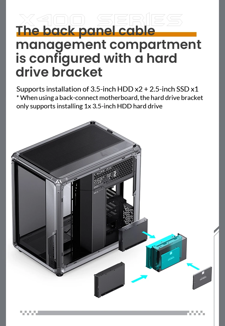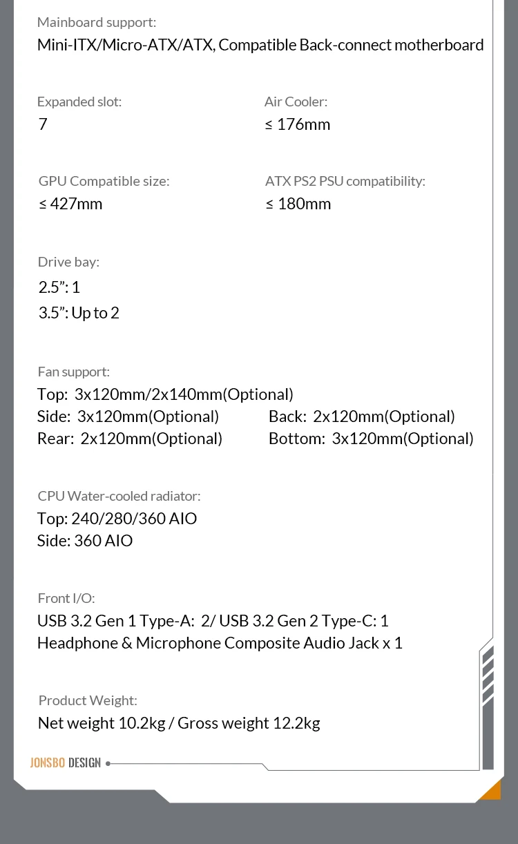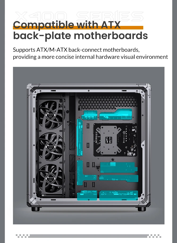 Motherboard Support:MINI-ITX / MICRO-ATX / ATX compatible with back-connect design |