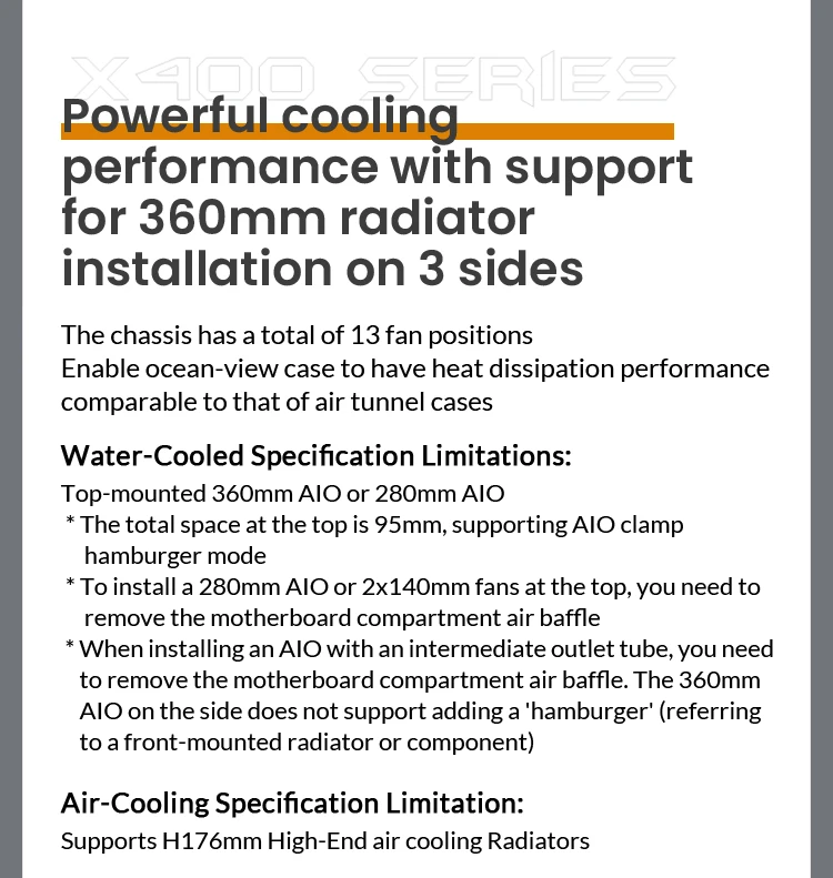 Radiator Support:Top up to 240mm/280mm/360mm;Side:up to 360mm |