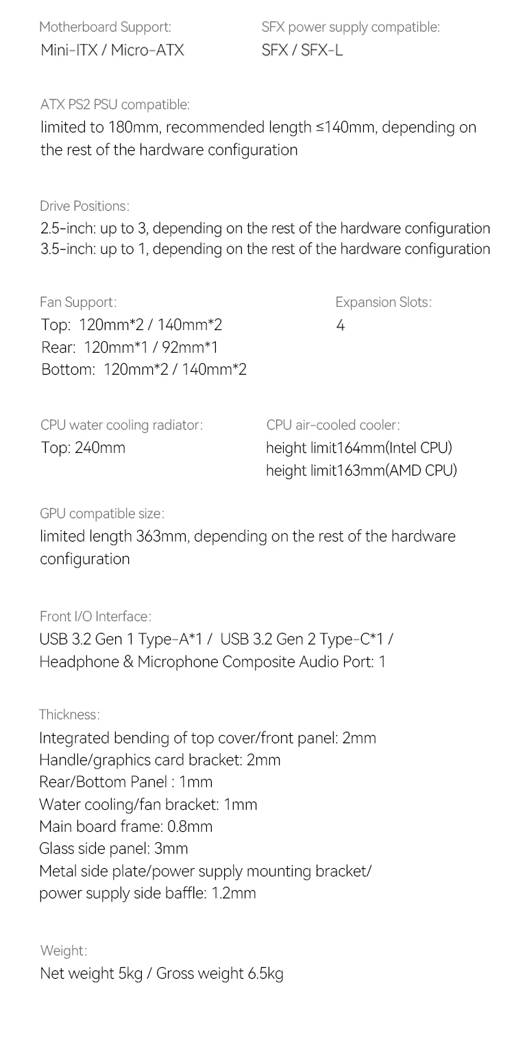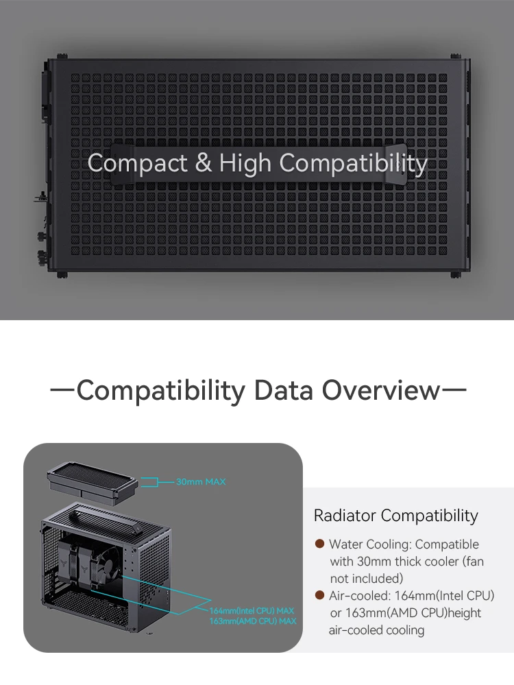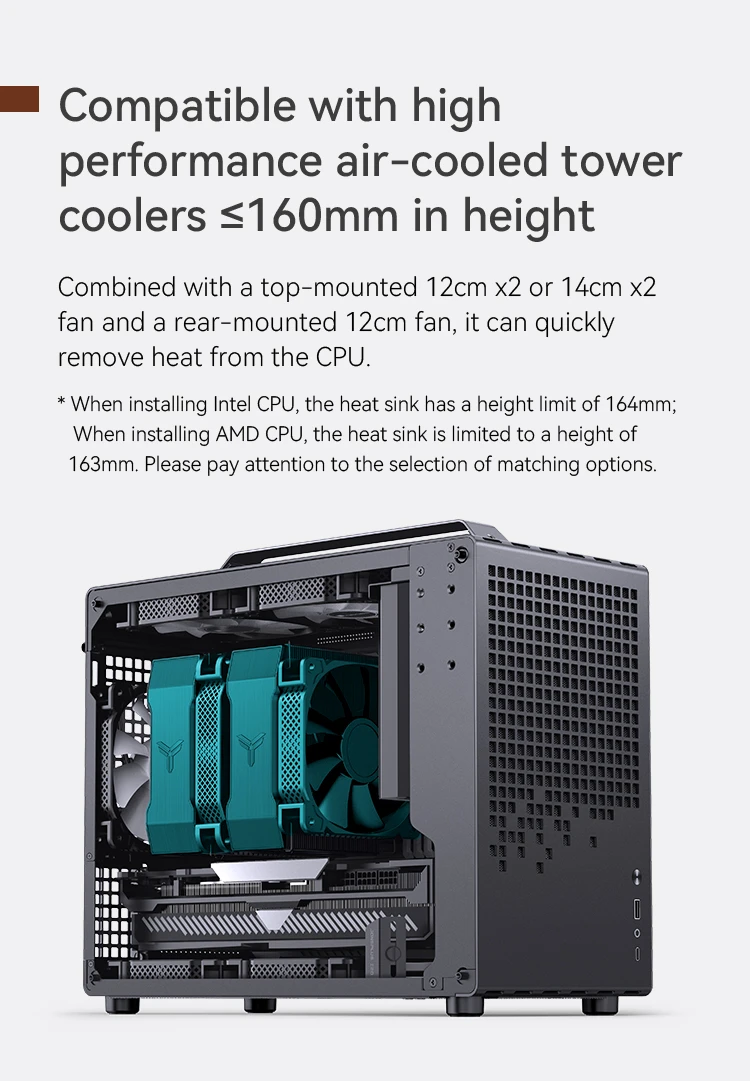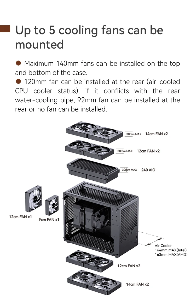 CPU Air Cooler Clearance:164mm MAX (Intel CPU) or 163mm MAX (AMD CPU)