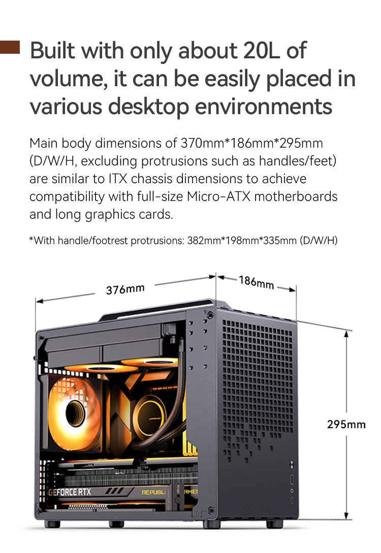 Dimension(w/o handle/feet and other protrusions):370mm * 186mm* 295mm(depth/width/height)