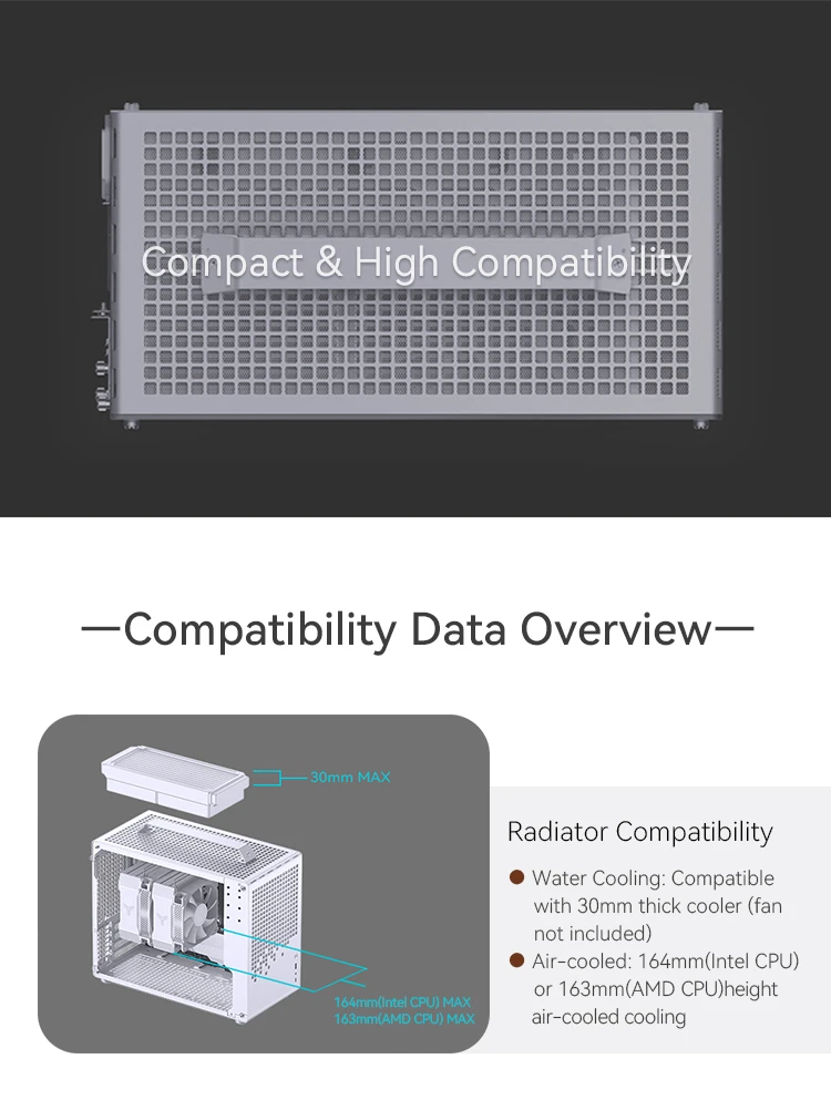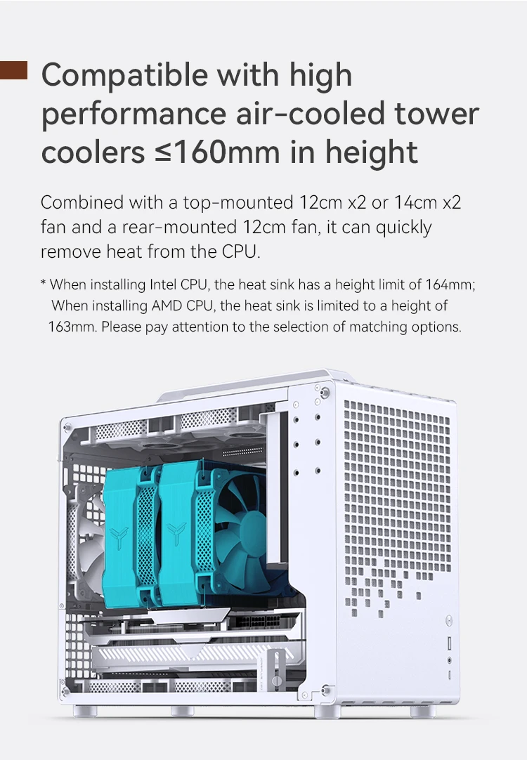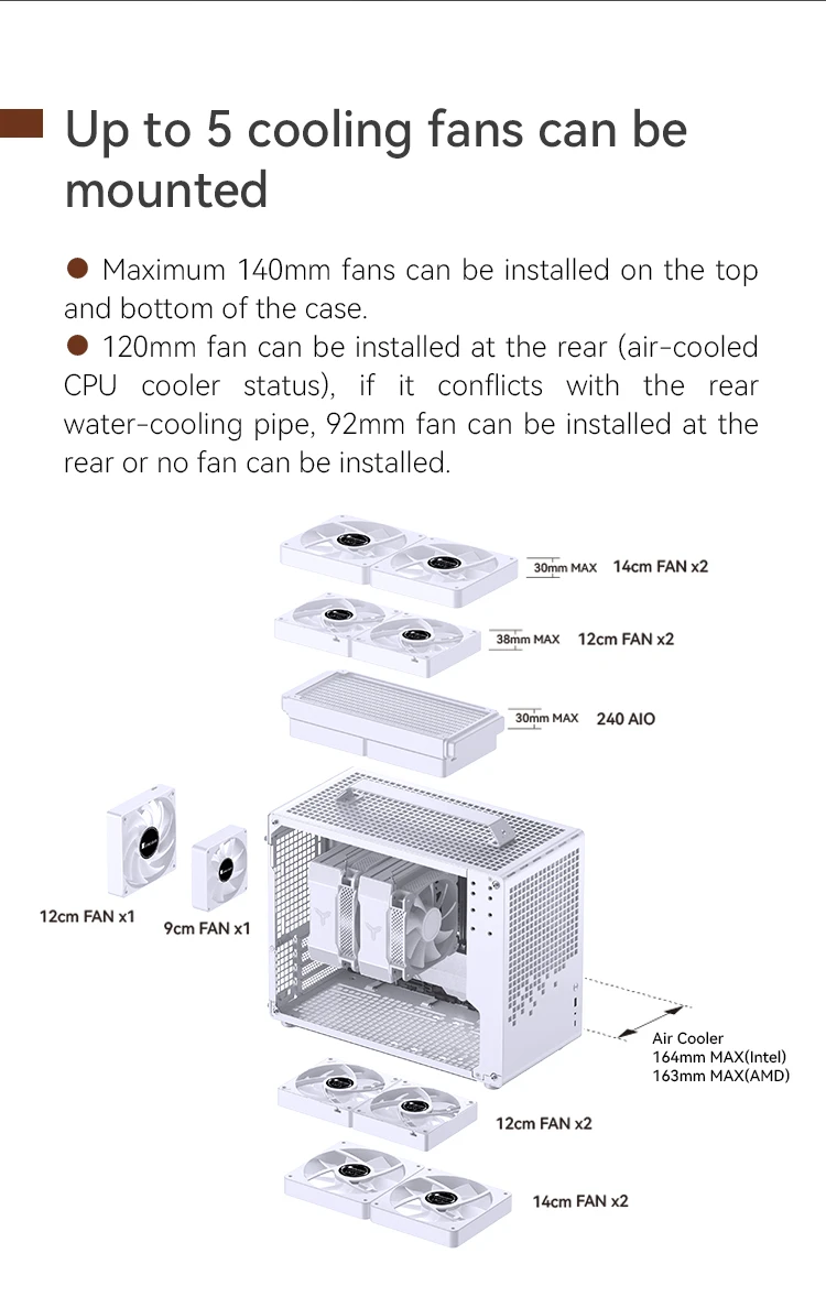 CPU Air Cooler Clearance:164mm MAX (Intel CPU) or 163mm MAX (AMD CPU)