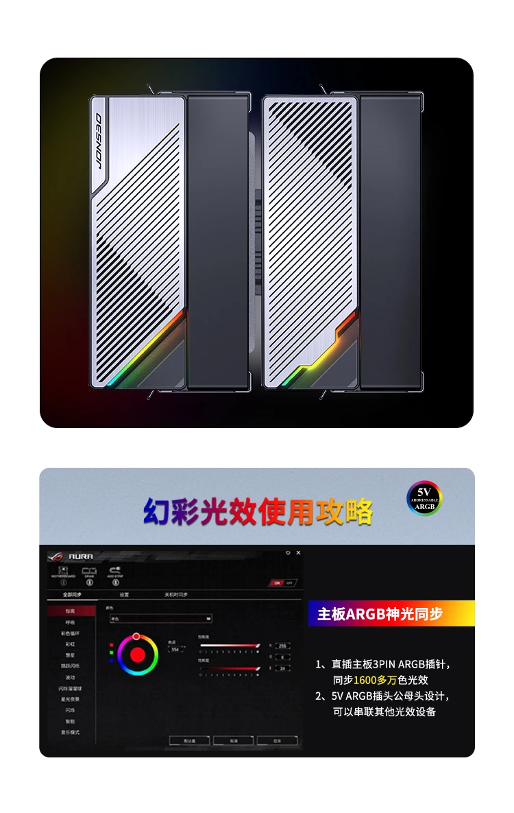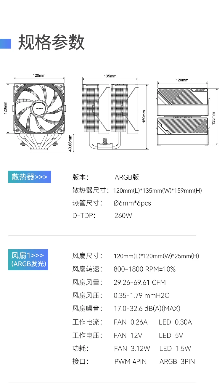 接口:PWM 4PIN ARGB 3PIN(Fan 1 ARGB) PWM 4PIN (Fan 2)