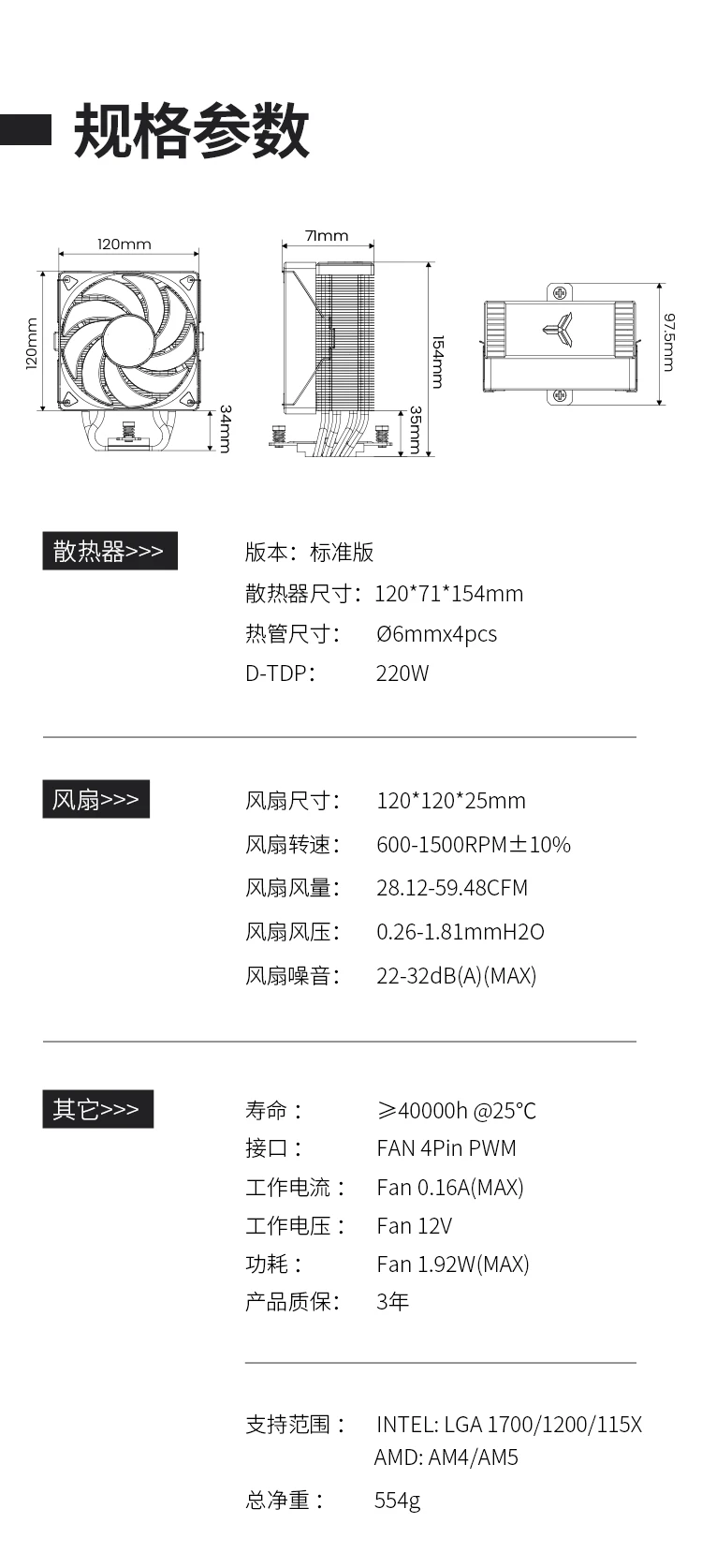 支持范围:INTEL: LGA 1700/1200/115X AMD: AM4/AM5