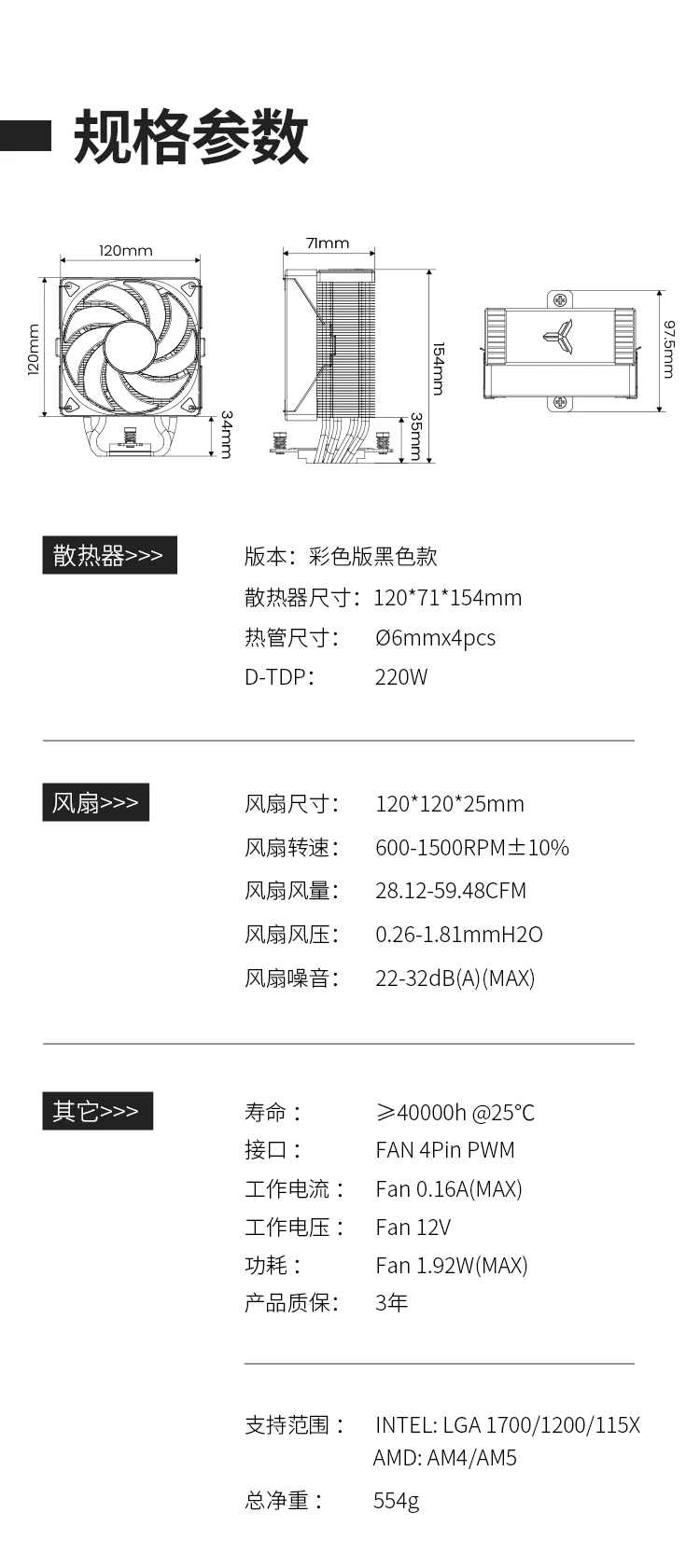 支持范围: INTEL: LGA 1700/1200/115X AMD: AM4/AM5
