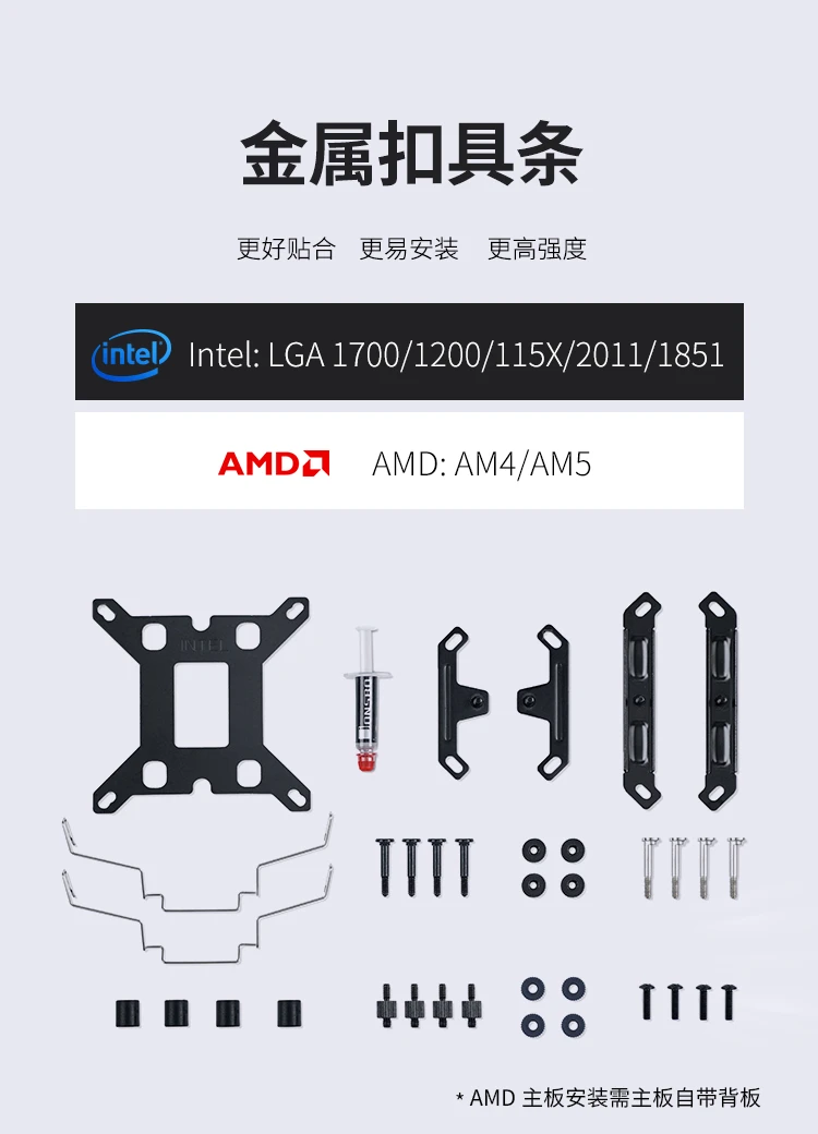 支持范围: INTEL: LGA 1700/1200/115X/2011/1851 AMD: AM4/AM5