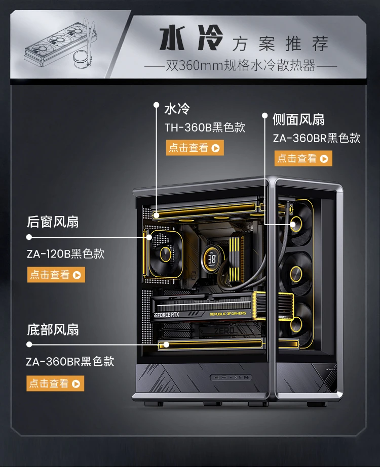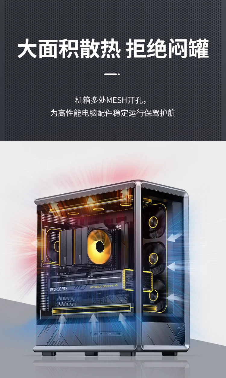 风扇:顶部:120mm*3或140mm*2(选配);侧部:120mm*3风扇(选配);后部:120mm*1(选配); 电源仓:120mm*3(选配) |