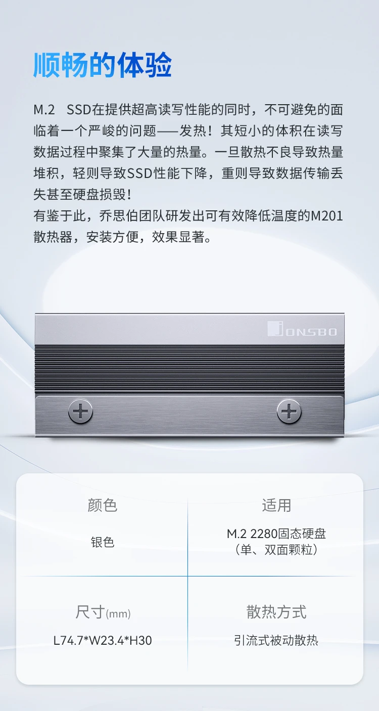 M.2 SSD在提供超高读写性能的同时,不可避免的面临着一个严峻的问题--发热!其短小的体积在读写数据过程中聚集了大量的热量。一旦散热不良导致热量堆积,轻则导致SSD性能下降,重则导致数据传输丢失甚至硬盘损毁!