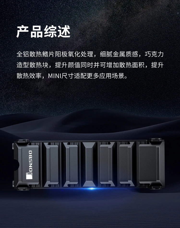 全铝散热鳍片阳极氧化处理,细腻金属质感,巧克力造型散热块,提升颜值同时并可增加散热面积,提升散热效率,MINIR寸适配更多应用场景。