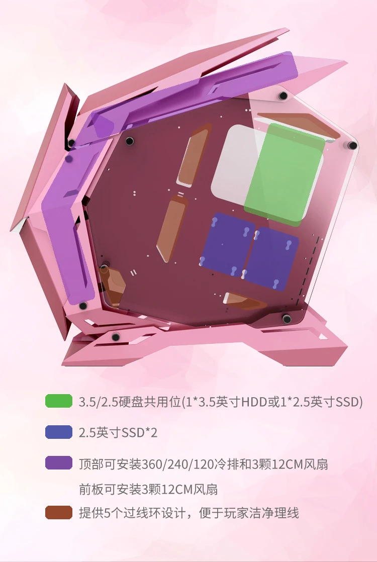硬盘位:2.5SSD*2+3.5HDD*1 或2.5SSD*3