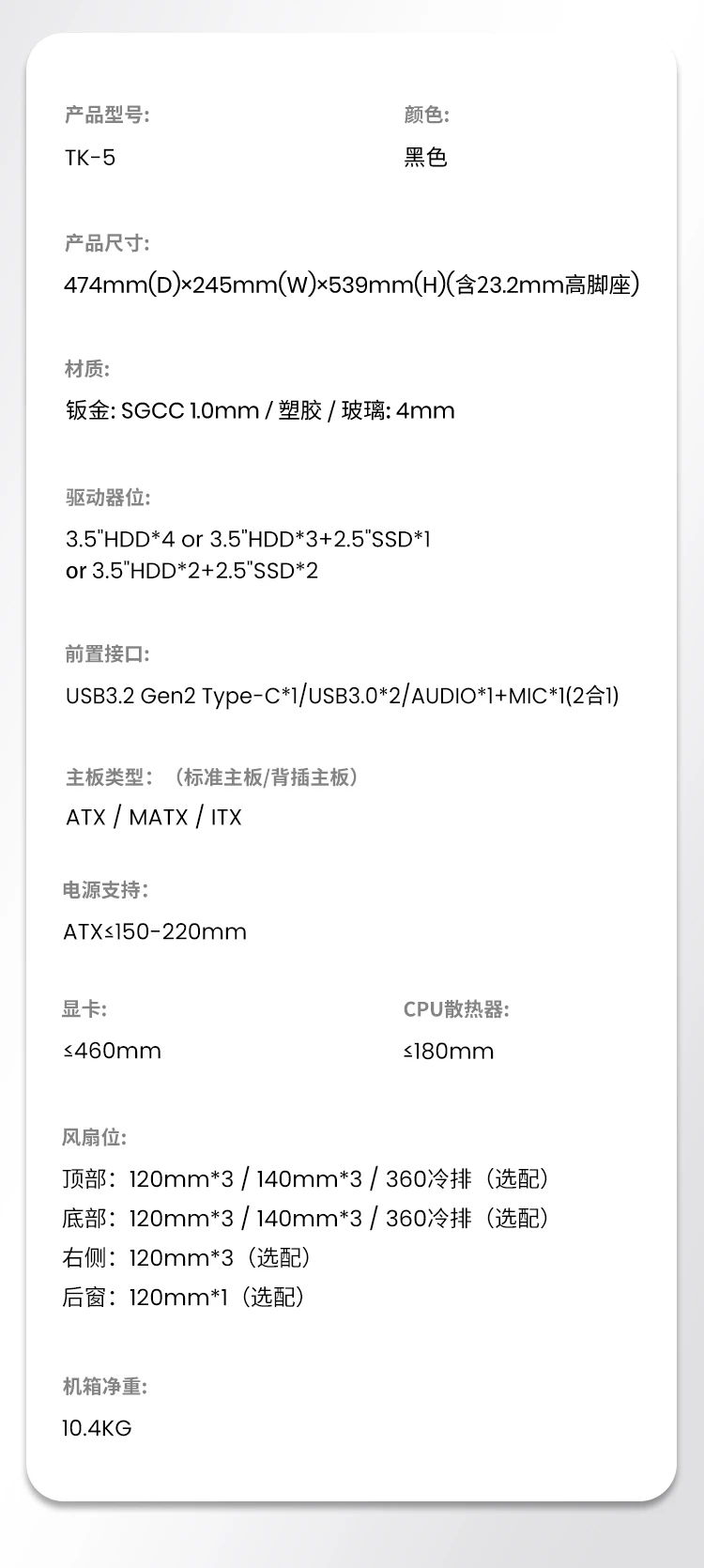 显卡支持:≤460mm |