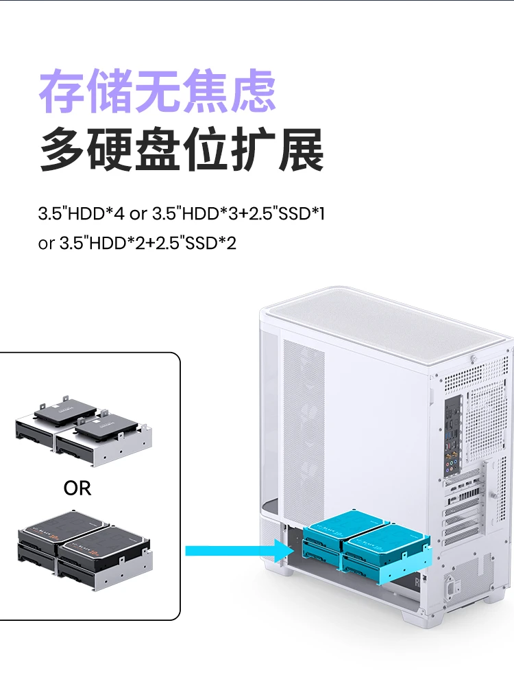 驱动器位:3.5〞HDD*4 / 3.5〞HDD *3+2.5 SSD*1 / 3.5〞HDD*2+2.5〞 SSD*2 |