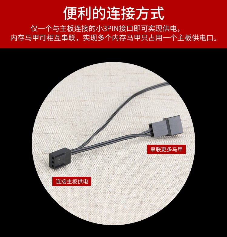 NC-1是一款可以装配在普通电脑内存上实现七彩光效的内存马甲,可以让用户以更低费用实现内存发光尤其是不用淘汰现有的不发光内存条。马甲顶部可实现流光256色自动变化功能,双侧板采用铝镁合金材质,阳极拉丝工艺制作;内部配备双导热硅脂片,可辅助内存散热;可支持高/矮内存条和单/双层芯片内存;配备标准小3PIN供电接口,接口可串联实现多个内存马甲共用一个供电接口。