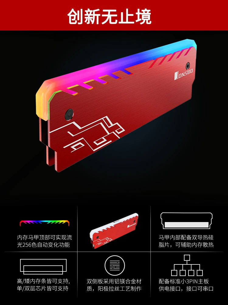 256色流光RGB灯效:JONSBO 乔思伯 推出 NC-1 内存散热片 79元 (fashaoyou)(2017-11-13)