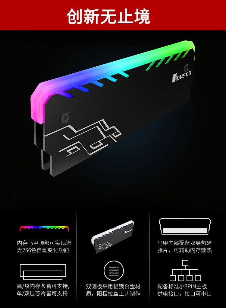 256色流光RGB灯效:JONSBO 乔思伯 推出 NC-1 内存散热片 79元 (fashaoyou)(2017-11-13)